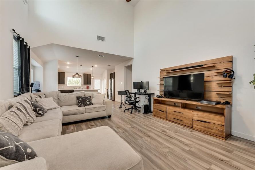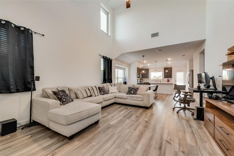 This gorgeous 2 story home in Clements Ranch features luxury plank flooring, an open floor plan, and high ceilings. As you walk into the kitchen you will notice an enlarged island, quartz counter tops and gas appliances. The home offers 3 bedrooms, 2 and a half bathrooms, and a flex room ideal for...