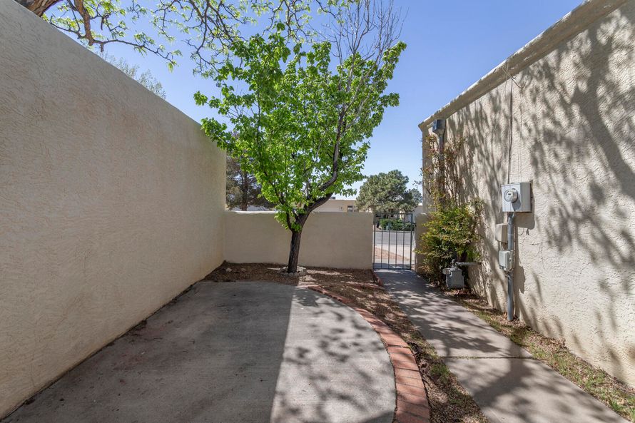 NO HOA!! Foothills living just 4 blocks from the Tramway bike trail and only 1/2 mile from the Piedra Lisa Trailhead in the National Forest! One level townhome with two bedrooms, two bathrooms, and office. Gated courtyard entry leads into generous living room with gas log fireplace, formal dining...