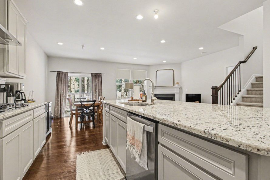 Discover this perfect home, open & airy w/a wonderful floor plan on a tree-lined corner lot. The foyer welcomes you w/custom trim, flowing into a large gourmet kitchen featuring a huge granite island, 42-inch cabinets, subway tile backsplash, crown molding, stainless steel appliances, attractive...