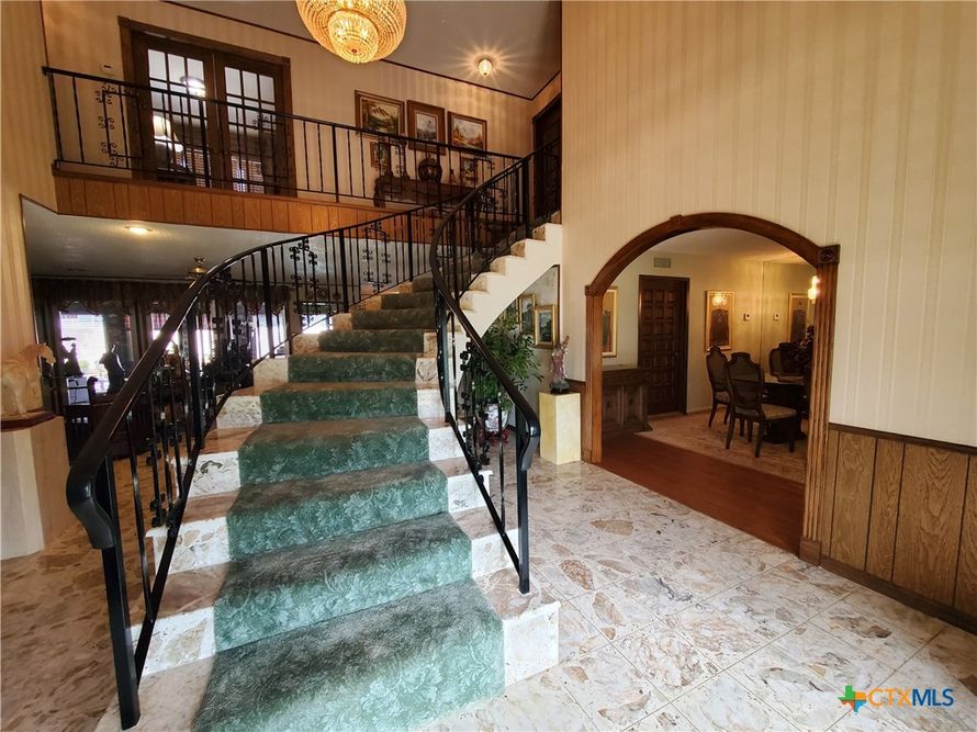 Nestled in the heart of historic Goliad, this regionally inspired estate offers over 4,000 sq ft of timeless charm and modern convenience. This spacious residence features five bedrooms, four bathrooms, and a stunning grand foyer with a spiral staircase that sets the tone for its architectural...