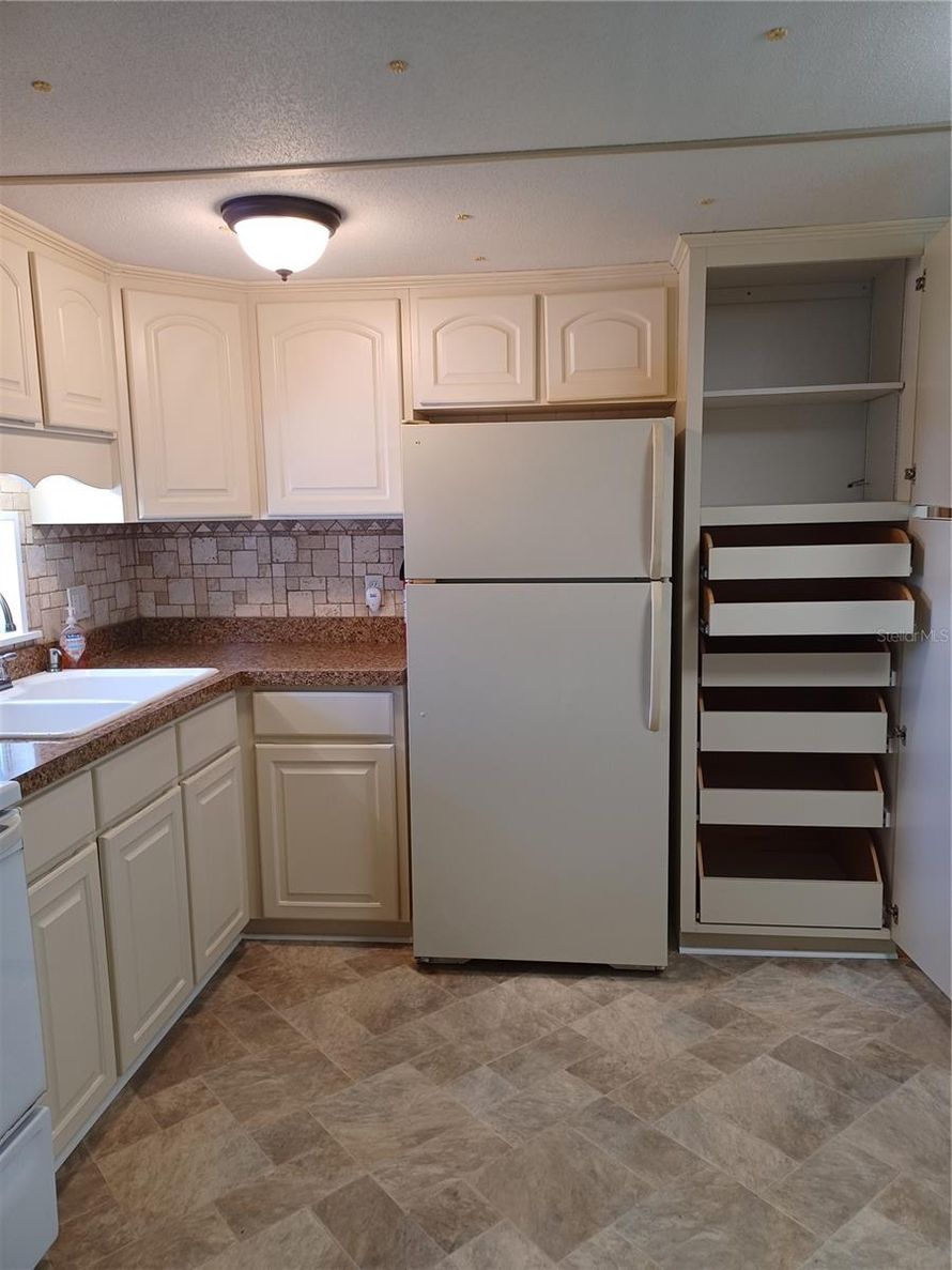 Great community where you own your own land. This is a singlewide, but an addition added that is the 12'x28' living room area that has newer windows carpet and laminate flooring. Kitchen is open to the eating area. Kitchen has tile back splash near the counter area, newer microwave and pullout...