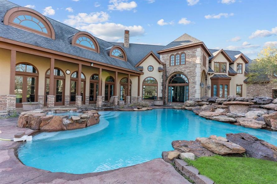 4+ Acres on constant level Alkire Lake, Gorgeous house (Colorado style with stone and stucco), The pool with waterfall and outside gourmet kitchen, A second independent building that can be a RV garage or an office building or Workshop extraordinaire or Storage area, An expended 28ft boathouse,...