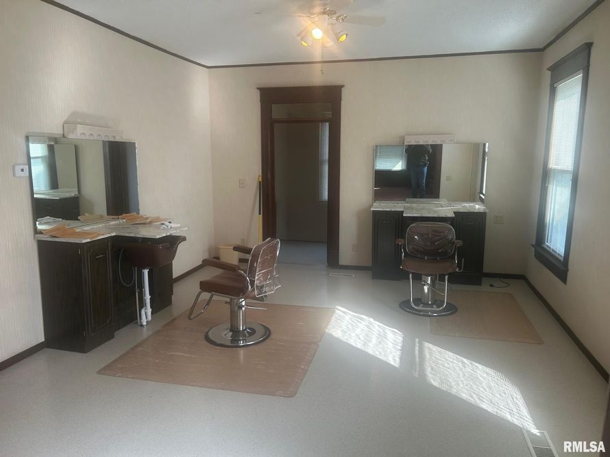 This property is currently set up with living space on 2nd floor with Kitchen living room, 2 Beds and full bath on 2nd Floor. Main floor was used as salon. Could easily be duplexed out. electric and gas have 2 separate meters. Could also be easily converted back into Single family home with 3...