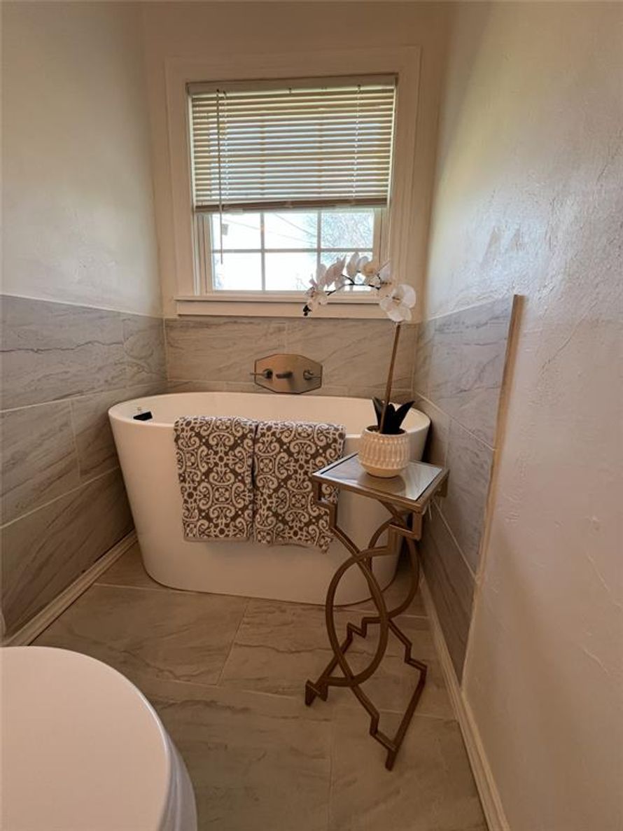 Huge fenced back yard is a blank canvas. Great space for kids to play. This 3 bedroom home was converted from 1 bathroom to 2 bathroom. The added bathroom has a luxury soaking tub, with the original bathroom having a shower. New appliances in the kitchen and new concrete driveway and garage...