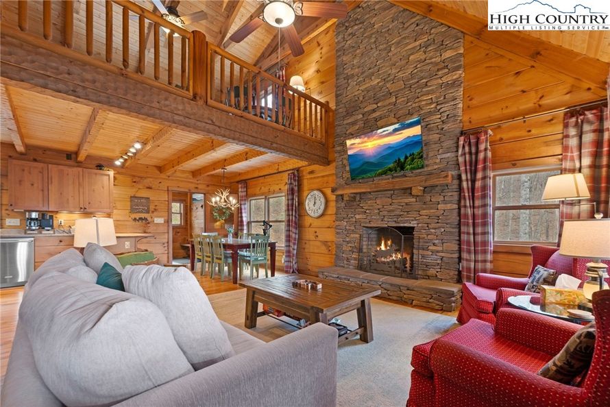 Beautiful New River log cabin retreat with incredible views, generating over $50K annually in short term rental income!! Situated on 3+ private acres with direct frontage on the New River, this 3BR/3BA fully furnished log cabin offers the perfect blend of mountain charm, privacy, and income...