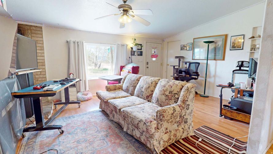 Single-level home on a spacious rural, horse property lot set in a quiet area with beautiful mountain views. Interior features a functional layout with open living space, laminate flooring, and a large kitchen and dining area. Main floor includes 3 bedrooms and 2 full bathrooms. The 1 acre yard...