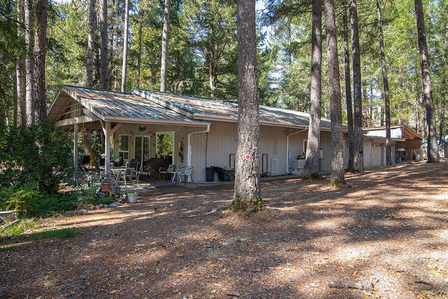 Versatile 2.71-acre gated property offering multigenerational living and income potential. The park-like setting features mature trees, sprinkler irrigation, privacy, and multiple living spaces. The main home includes 2 bedrooms, 1 bathroom, a spacious great room with floor-to-ceiling rock wall...