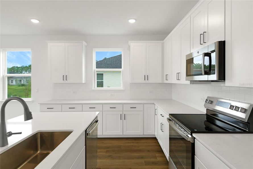 Move-in ready and situated on a lake front homesite within a sought-after gated community, this beautifully appointed Agate plan offers 4 bedrooms and 3 bathrooms of refined living. The open concept design centers around a spacious kitchen featuring quartz countertops, a large island, tile...