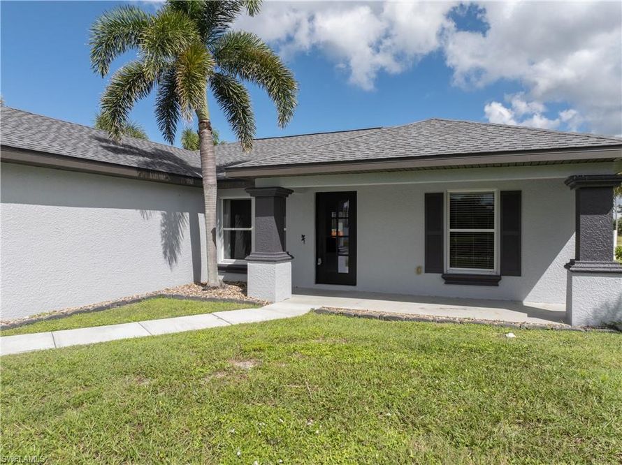This turnkey pool home is located in a quiet area of NW Cape Coral surrounded by new homes. The property features mature landscaping and a welcoming front porch. The interior provides a view of the pool and has an open floor plan for convenient entertaining. The kitchen includes a breakfast bar...