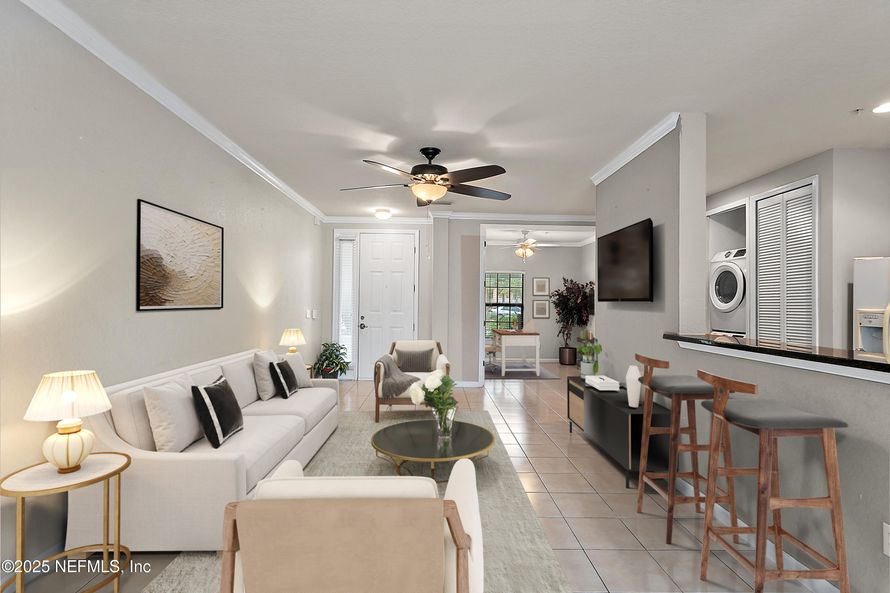 Park and Preserve views from this gorgeous ground floor condo in the gated Avila community just inside Palencia. Available now for quick move in. Living Room & Dining Room open to each other & to the Kitchen. Gourmet Kitchen features granite counters, white appliances & breakfast bar. Stacked full...