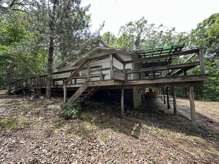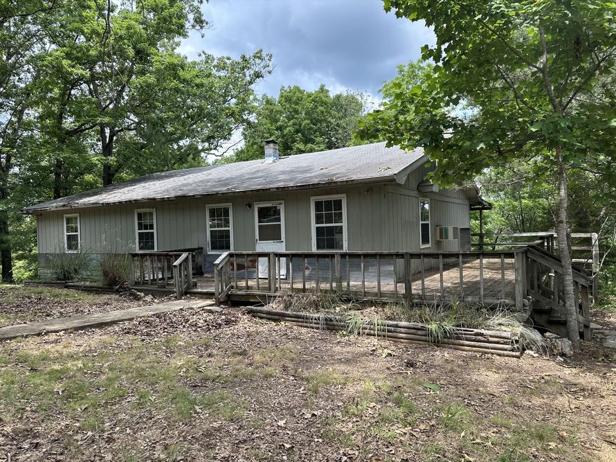 3 bedroom 1 bath home on over 80 prime acres in Ozark! Land is surrounded by Mark Twain National Forest! Home has an unfinished basement, wrap-around deck/porch, and large great room with wood stove. Land has large storage barn (suitable for tractors, trucks, etc.) and a stocked pond (appears to...