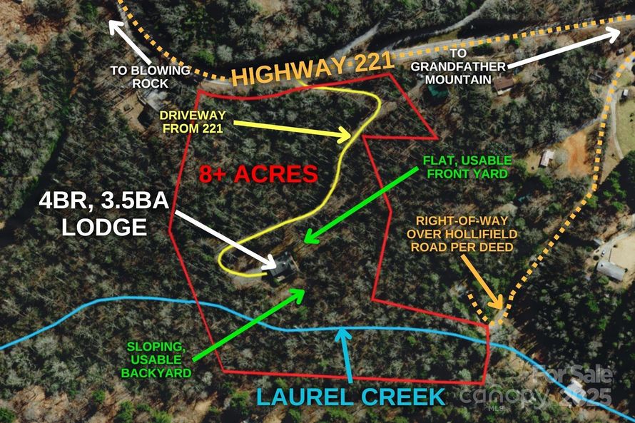 4102 Highway 221 - the perfect retreat, full-time residence, or investment property in close proximity to downtown Blowing Rock and to National Park lands, including the Blue Ridge Parkway, Bass Lake, Cone Park, and even Grandfather Mountain. Resting on 8+ acres of wooded privacy with useable yards...