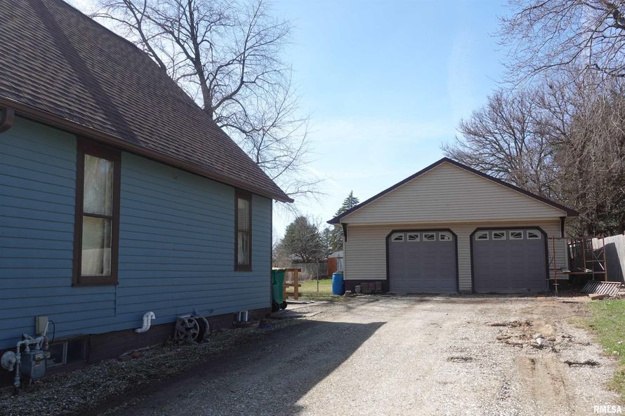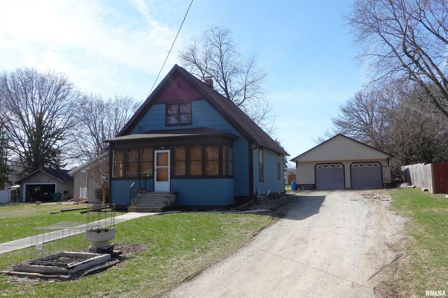 4+ Car Garage (28x48) comes with a 2 Bedroom, 1 Bath Fixer Upper featuring enclosed front porch, living room, den, dining room, kitchen with laundry hookup, and basement. Wood exterior, garden shed, and gravel drive. Grab your tape measure and tool belt and take a look!