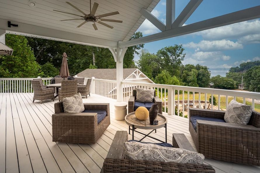 2 boats and 2 sea doos are negotiable!!! Lovely charmer w/lake views & wrap around porches! Plenty of room for cars & boats w/1 garage attached & 2.5 heated/cooled garages detached! This renovated home has an open floorplan & tons of space to entertain and granite throughout. Master & luxury bath...