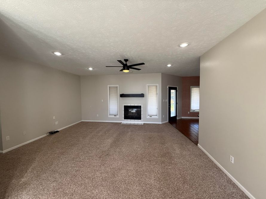 About 2,120 sq. ft. (per assessor) in this 4 bedroom, 2 bath home in Carriage Park. Split bedroom floor plan. Great room has gas log fireplace. Dining area off foyer. Kitchen has new range in Fall, 2025. Kitchen has breakfast bar seating and dining area. 3 bedrooms and 1 full bath on the north...