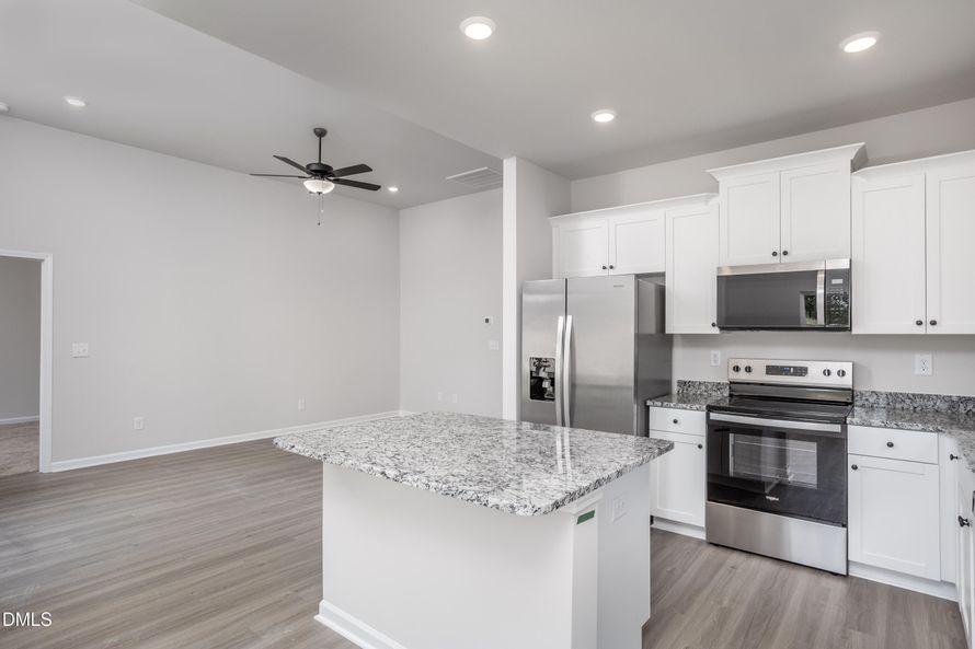 The Blanco is a ranch home with a stylish and functional layout with 3 bedrooms, 2 bathrooms, a large living room and more. The kitchen with its granite countertops, island, pantry and SS appliances and is open to the dining room. Split bedroom plan gives privacy to the master. Vaulted Family room...