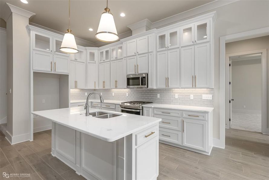 Stunning new construction home with great curb appeal - gated community - large open floorplan with abundant natural light throughout - spacious gourmet kitchen features modern fixtures, stainless appliances, custom cabinets, and lovely tile backsplash - custom details and neutral colors throughout...