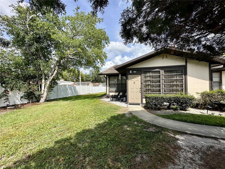 Tucked away in a private spot within Orange Blossom Ranch is this lovely 2 bedroom 2 bathroom corner unit. First you will notice plush grass in front as well as on the side, a feature unique to this spot. Enter through the screened front porch perfect for storing bikes, raising plants or enjoying...
