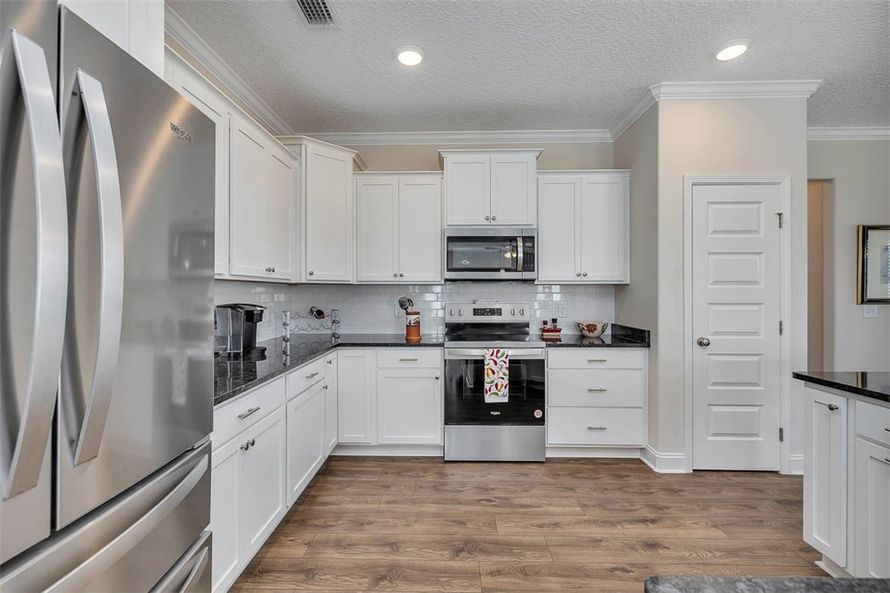 This terrific almost-new home built in 2025 features 3 bedrooms and 2 bathrooms on the main level, and one bedroom or bonus room with full bath upstairs. Upgrades include screened porch with extended additional patio, custom made slide-outs in kitchen cabinets, stainless steel refrigerator, LVP...