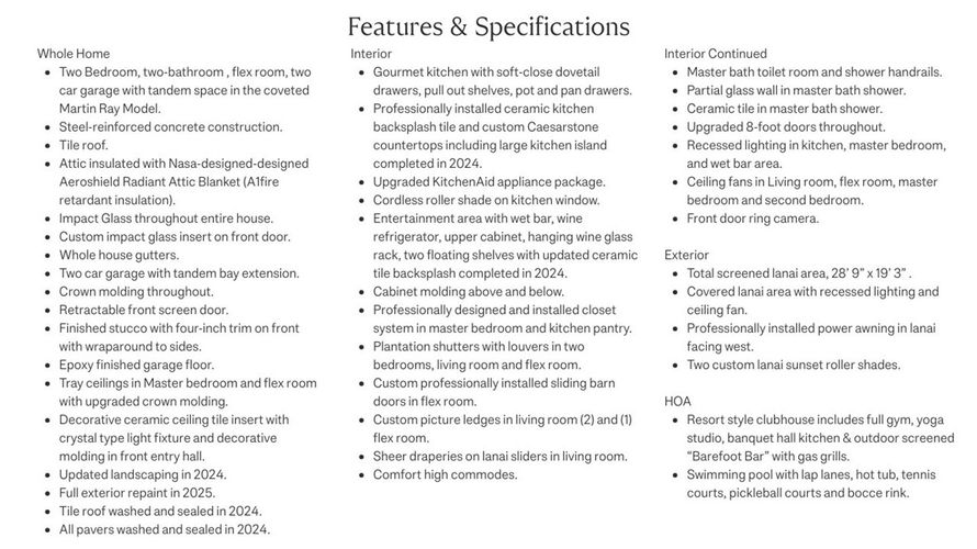 Discover this immaculately maintained 2017 rare Martin Ray model located in the highly sought-after Lakes at Waterway Village. Enjoy lake views from the spacious extended screened lanai with motorized retractable shade awning. 2 bedroom, 2 bathrooms plus den/office in this generous 2094 Sq Ft...