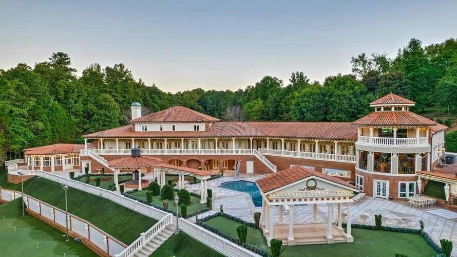 This RESORT STYLE Home is the Ultimate Entertaining Venue! Nearly 5 Secluded Acres complete with Pebble Tec Heated Salt-Water Pool, Spa, Tennis Court, 2 Volleyball Courts, 19 Hole Putting Green, Several Gazebos, Oversized Marble Balconies, Parking for at Least 100 Vehicles and State of the Art...