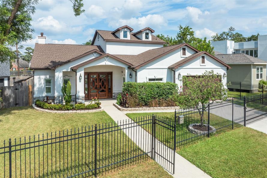 This home in the historic community of Riverside Terrace is a must see! Be greeted w/beautiful landscaping, a custom-made electric gate & gorgeous natural wood double front door. This 4 bedroom, 4.5 bath home features an open concept floor plan w/high ceilings, crown molding, brand new flooring...