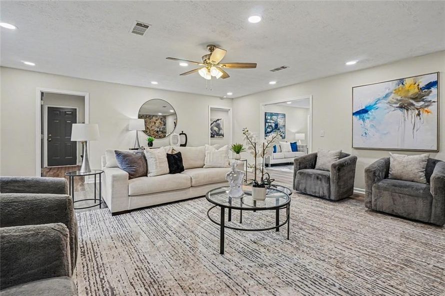 Offered here is a vanishing breed. A solid brick ranch, completely transformed, sitting on a lot that earns a second look from the air: generous, fully fenced, backed by mature Georgia pines on all sides. Single-level living. Three full common spaces. And a stone chimney you notice from the...