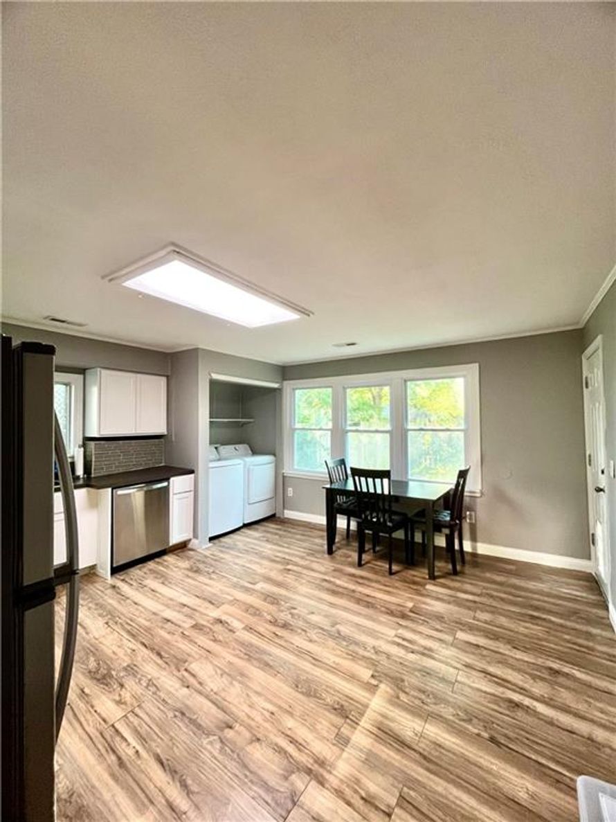 Step into this charming, updated, beautifully refreshed home that blends modern comfort with unbeatable convenience. The covered front porch and the blue siding create great curb appeal. This property features a fully wooden privacy-fenced backyard, perfect for pets, gatherings, or quiet evenings...