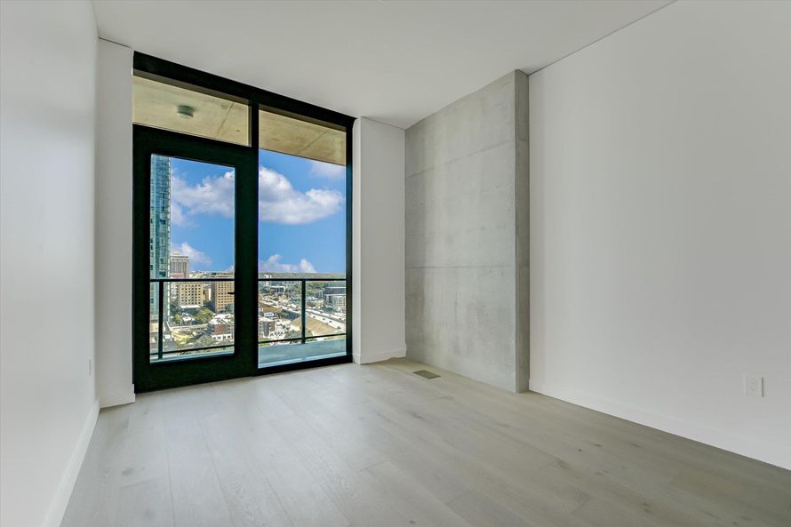 Experience unparalled luxury at The Modern Austin Residences in this thoughtfully designed 1 bed, 1 bath home with amazing city views. The open kitchen-living floor plan leads to the spacious covered balcony perfect for soaking in the views. The kitchen features dark quartzite natural stone...