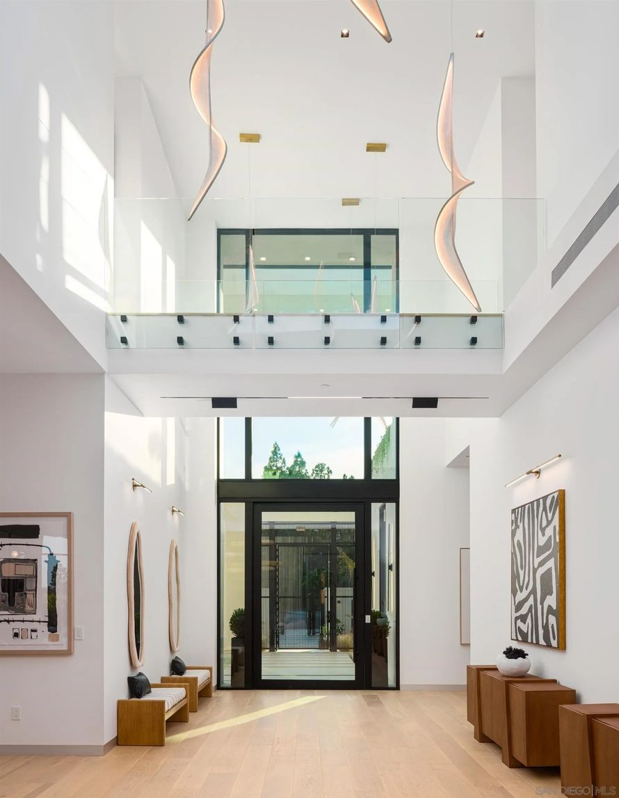 Perched in the heart of the esteemed Muirlands, this fully double gated estate built for privacy and security, features custom aluminum modern gates that open to a double courtyard motor court with custom glass doors and oversize garages, adding a touch of exclusivity to this architectural marvel....