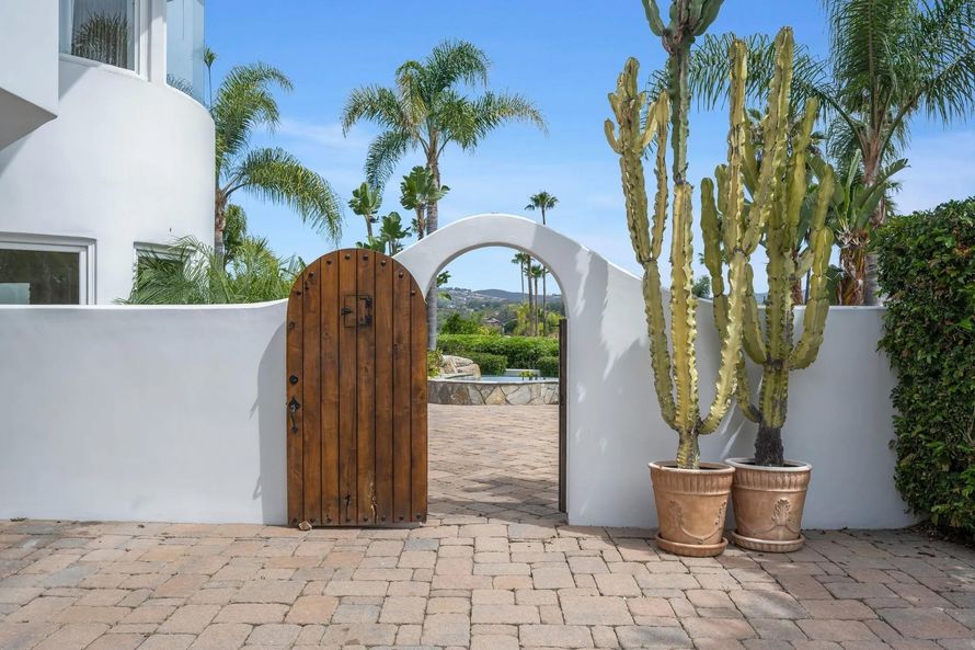 Private Spanish Resort Estate ~ Set behind the gates of the Groves in Rancho Santa Fe and within the Roger Rowe School District, this timeless estate offers space, privacy, and a true resort lifestyle on a lush hillside with sweeping mountain views, mature landscape, and layered greenery. A white...