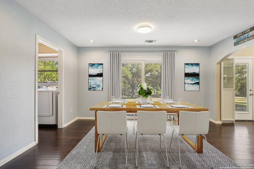 Spacious two story home surrounded by mature oaks. Enter into a spacious living room with high ceilings and plenty of sunshine flow in. Engineered scraped bamboo flooring runs throughout the home. There is easy access from the separate dining room to the well equipped kitchen with double ovens,...