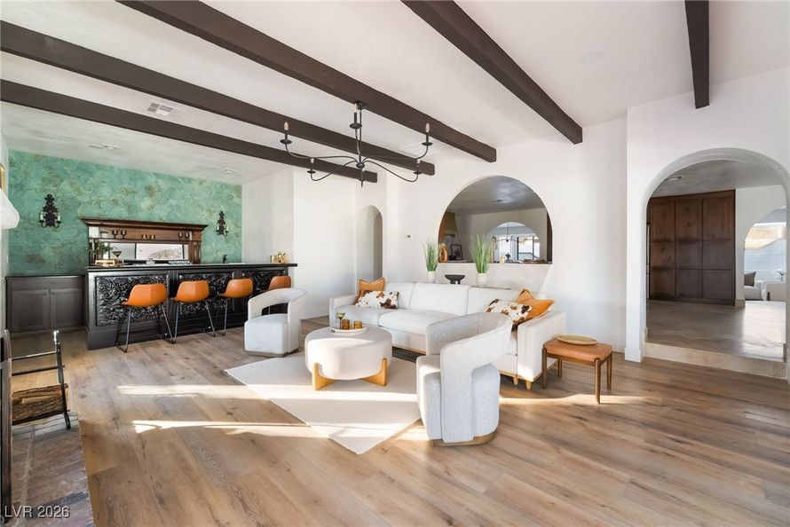 AS SEEN ON TV Welcome HOME to your extraordinary hacienda-style estate set on an expansive .57 acres in the heart of LV, designed as a private compound, this exceptional property blends timeless architectural character with generous indoor and outdoor living spaces rarely found in a central...
