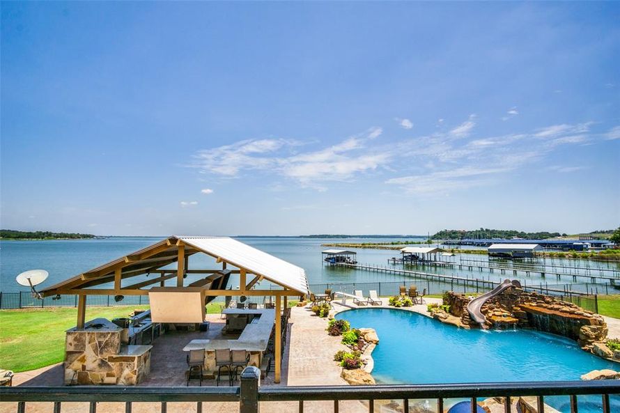 Welcome to paradise, with approx 165 feet of lake front! Both main houses built in 1990. This property has four separate homes. Beautiful resort like estate on almost 2 acres, with unobstructed views of open water! Four homes with an eight plus car garage, that includes a huge banquet area above...
