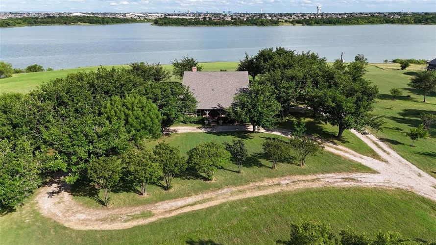 Experience breathtaking views of Lake Lewisville from this secluded 2.48-acre estate, minutes from the Dallas North Tollway, PGA Headquarters and the planned Universal Theme Park in Frisco! This 5-bed, 4-bath home features an open floor plan with bay windows and an upper-level guest suite...