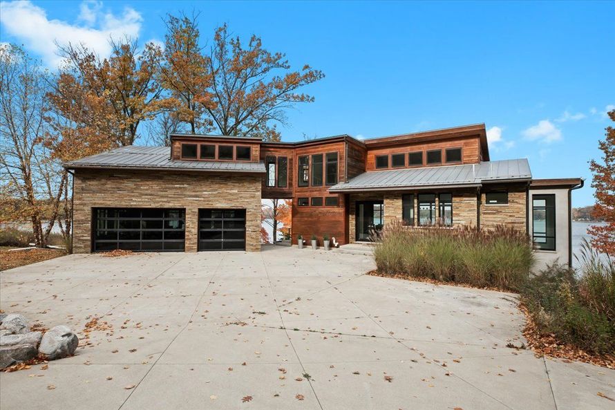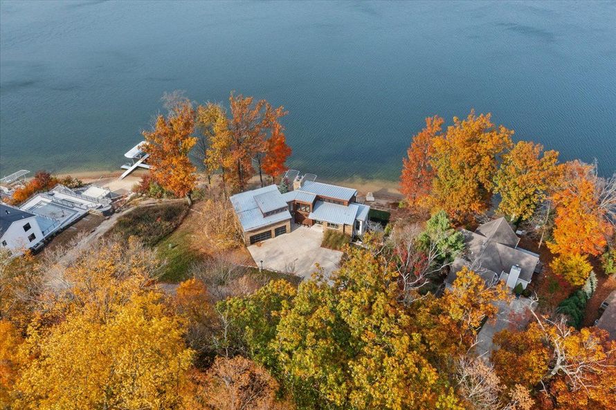 Welcome home to this luxurious Malibu inspired 4 story! You don't want to miss this 4 bedroom 3.1 bath modern style beauty with 160 feet of sandy beach frontage on Round Lake. Each level of living space is immersed in upscale finishes such as maple wood, aluminum, glass, concrete, and marble. Both...