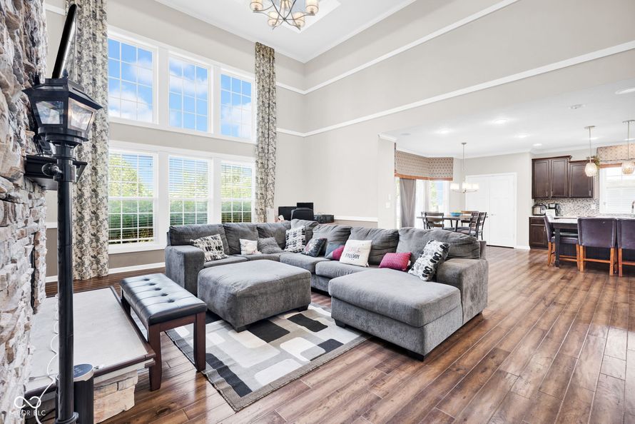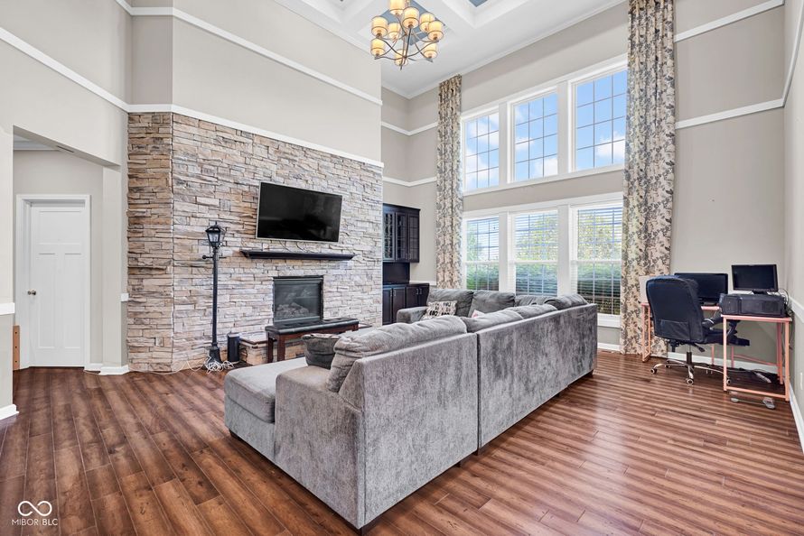 Welcome home! At the heart is undoubtedly the kitchen, a culinary haven designed for both everyday meals and entertaining. It features a double oven, elegant stone counters, and a spacious island with a sink, all flowing openly into the living space. The the 2-story living room is filled natural...