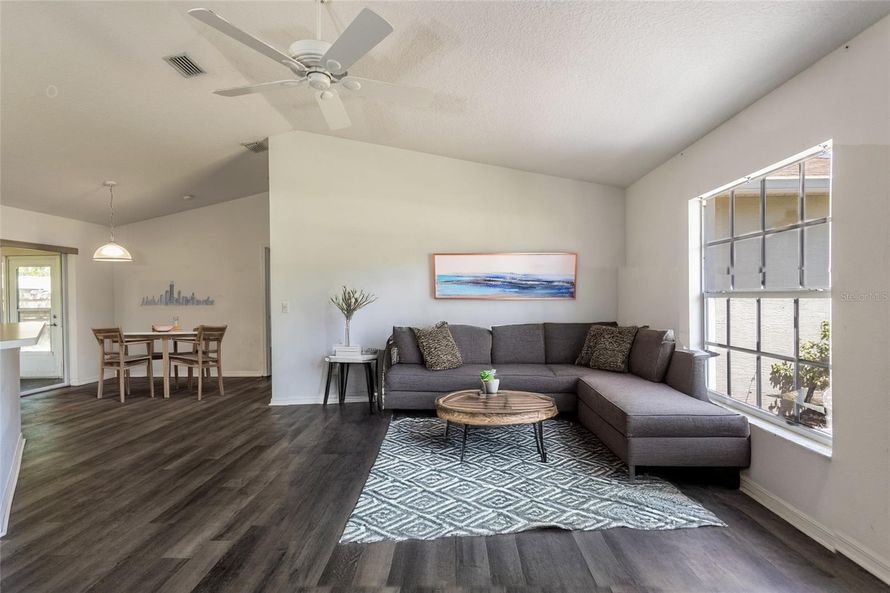 This sweet home is in the centrally located "Indian Trails" neighborhood. The 3 bedroom, 2 bathroom, has open plan living & dining as well as a spacious Florida room and a large fenced backyard. Excellent access to shopping, medical care, schools and all the amenities of Palm Coast and the Flagler...