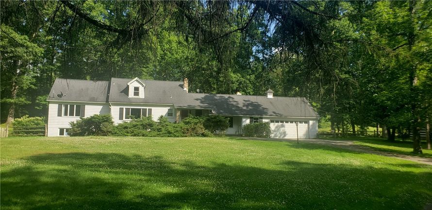 Classic country home in beautiful Ligonier is just waiting for your creativity and vision. Stunning setting with over 6 acres of enormous hardwood trees and expansive meadows. Awaken to the sounds of songbirds and streams. A lovely reflection pond is tucked into the woodlands near the stately stone...