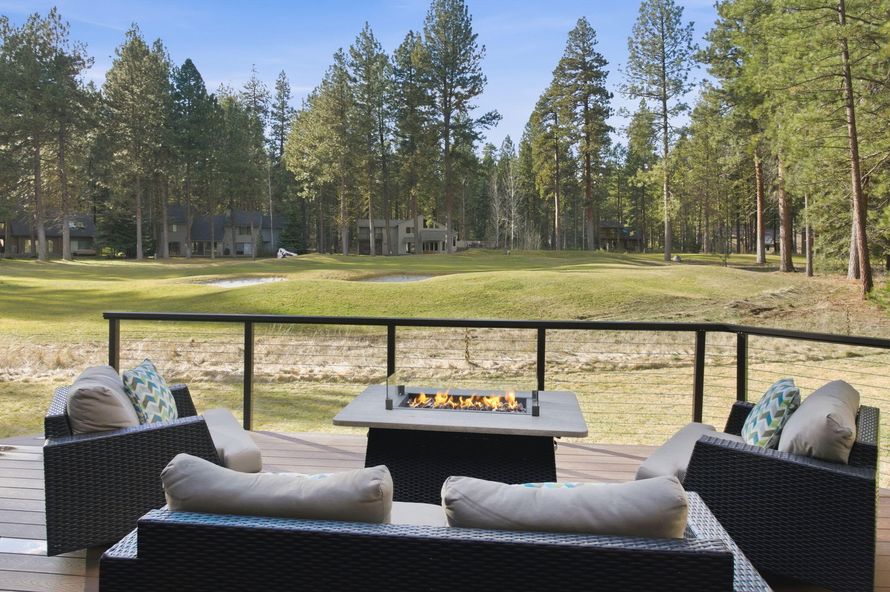Wake up to the view that golfers chase all day - the 5th green of the Big Meadow course at Black Butte Ranch. This 4,400+ sq ft retreat sits front row to the action, blending lodge style with modern comfort. A floor-to-ceiling stone fireplace anchors the great room, framed by vaulted knotty pine...