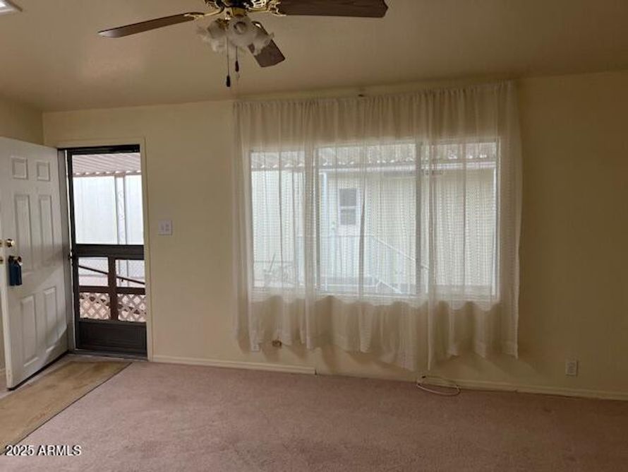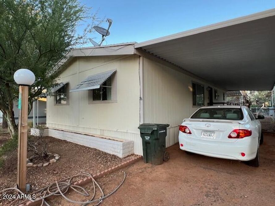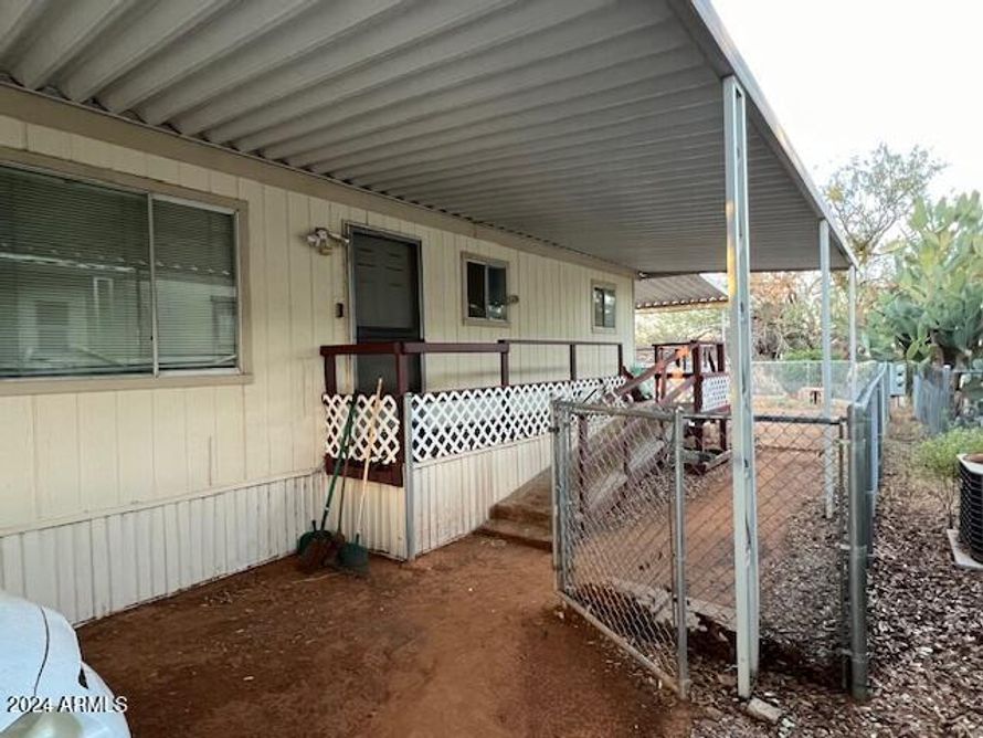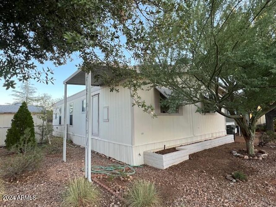 This house is close to all amenities of the park and the office, nice deck on back off of the dining room, fenced back yard, 2 sheds for lot of storage, 2 car carport, house has 3 bedrooms, 2 bathrooms, ceiling fans, central a/c, nice size kitchen, separate laundry room with more storage, ramp on...