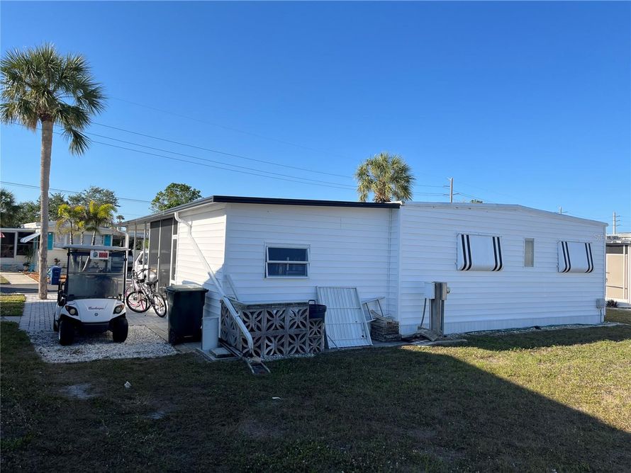 This home has vinyl siding, the AC is 2 years young, the best of both worlds, a screen room on the drive side and a Florida room on the front. Updated tile Shower, Pergo laminate flooring too! Extra side pavers gives added side by side parking, open kitchen with pass through, DO not miss this...