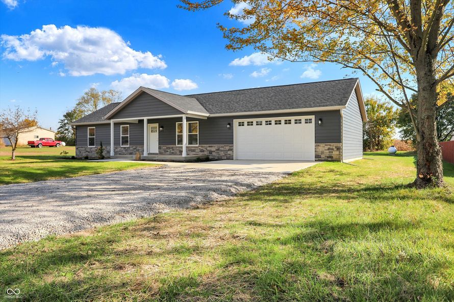 RARE opportunity to buy a BRAND-NEW home in Triton Schools! Pull up prepared to be wowed! This beauty boasts of 3bds, 2 bths, laundry, office, and open concept LR/Kit in 1,604 sq ft on almost 1/2 acre, only 5 minutes to the Fairland or London Road and I74 exit ramps! Enter entertainment central...