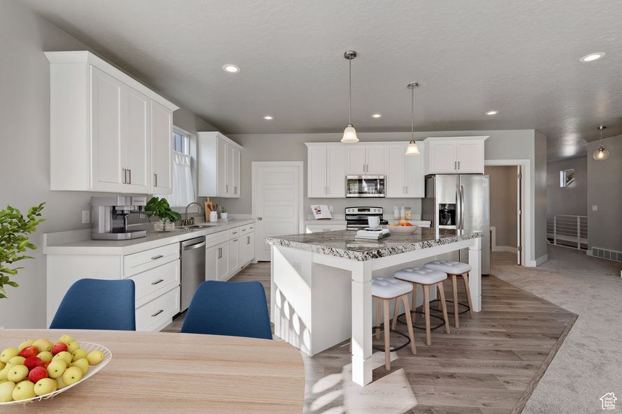 Welcome to this beautiful & newer single-family home located in a convenient 55+ community! Modern kitchen features a large granite island, sleek white cabinets w/soft-close mechanisms, quartz countertops, stainless steel appliances, luxury vinyl plank flooring & expansive walk-in pantry. Great...