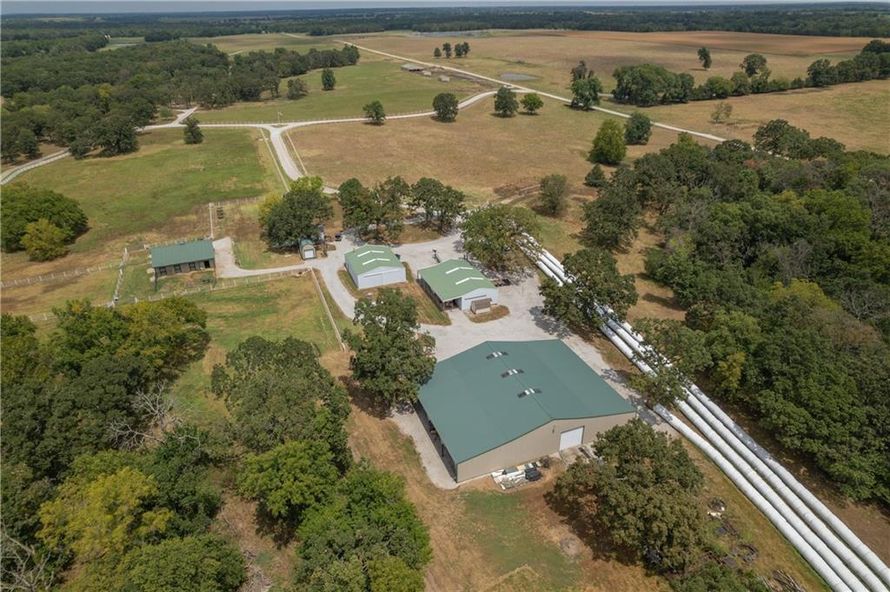 This 578+/- acres farm/livestock ranch is conveniently located in the Northeast area of Lamar, MO. The property offers large open pastures with great fencing, ample hay & water for livestock with stocked lakes, ponds and automatic waterers, corrals, a year-round creek, wooded ground with a river...