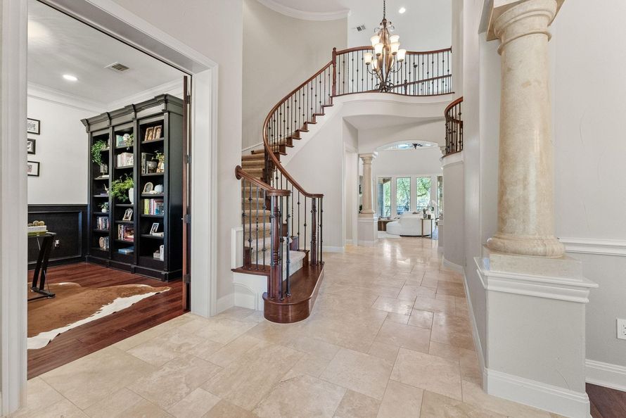 VA assumable loan at 3.375%! Welcome to this stunning Mediterranean-inspired 4-bedroom, 3.5-bath home, featuring a beautiful stone exterior, terracotta roof tiles, marble columns and arched accents. Short Term rentals are allowed! This custom-built retreat is located in the sought after community...