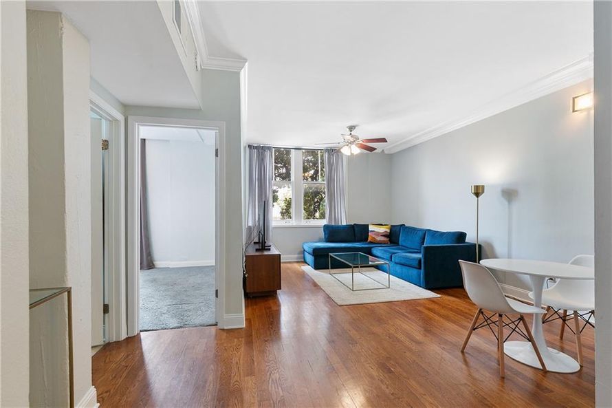 Ideal 1 bedroom condo WITH on site parking at the corner of Julia and Magazine Streets. Unit has great light in the living and bedroom, with a magnolia tree shaded view of the cityscape. Very quiet. Center of the Warehouse District across the street from award winning Restaurant Peche. Oak wood...