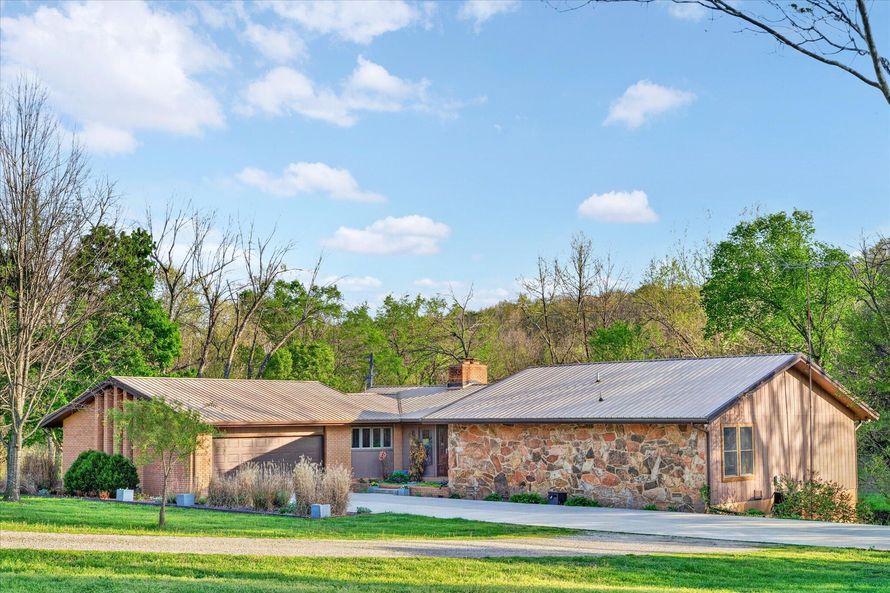 Set on just over 18 acres south of Halltown, this property offers a setting and design that immediately stand apart. From the moment you arrive, the combination of stone, warm wood tones, and surrounding landscape creates a quiet, tucked-away presence. Inside, the home leans into a mid-century...