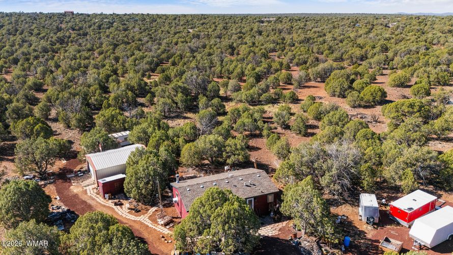 Tucked away on 3.3 heavily treed acres this 2-bedroom, 2-bath single-family home for sale at 7957 Lakeland Rd., Show Low, AZ! Offering privacy, plenty of shade, and room to enjoy the outdoors! The property is completely fenced with a Private Well, No HOA and a 750 square feet red steel framed 2-car...