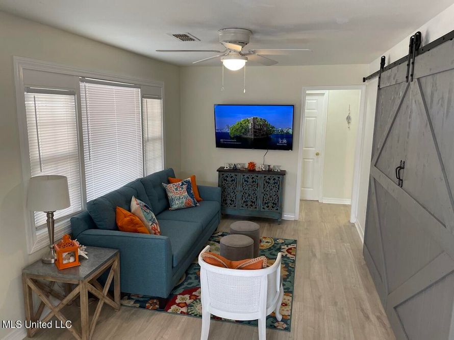 A short walk to the beach 5 minutes and restaurants makes this property an ideal home or second home. No flood zone (x zone) Year old AC unit Three good sized bedrooms. The living room is comfortable and much larger with the barn doors open. The kitchen has granite counter tops and a large...